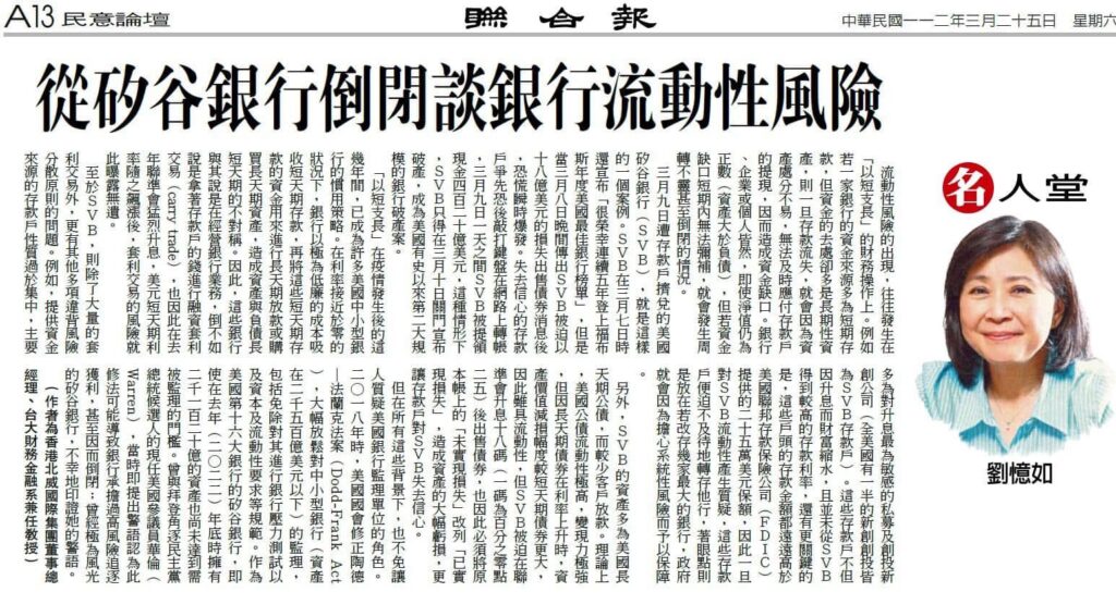 《從矽谷銀行倒閉談銀行流動性風險》
