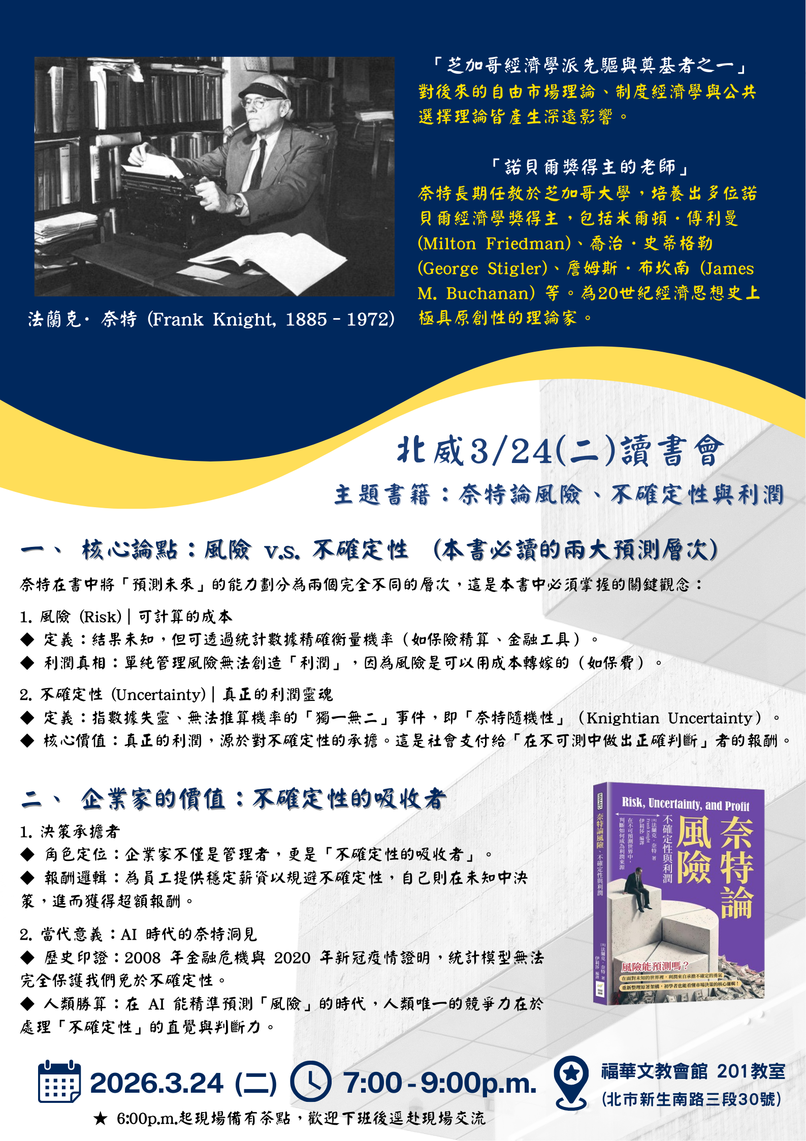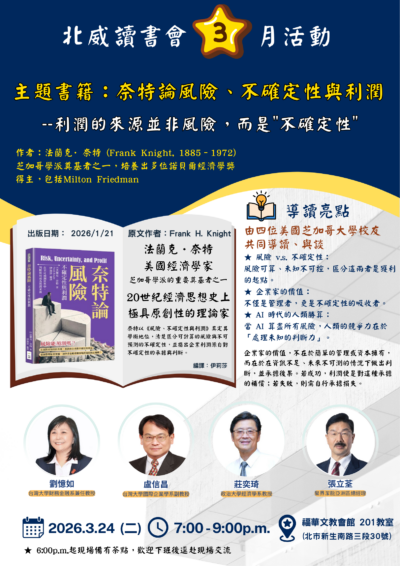 📅 3/24(二)北威讀書會(台北) ,歡迎報名參加。